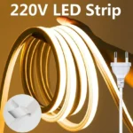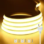The ShopLazaar 220V COB LED Strip Light delivers even, continuous illumination with no visible LED dots—perfect for modern, stylish lighting in bedrooms, kitchens, gardens, patios, and more. With its waterproof design (IP rating), it’s suitable for both indoor and outdoor use.