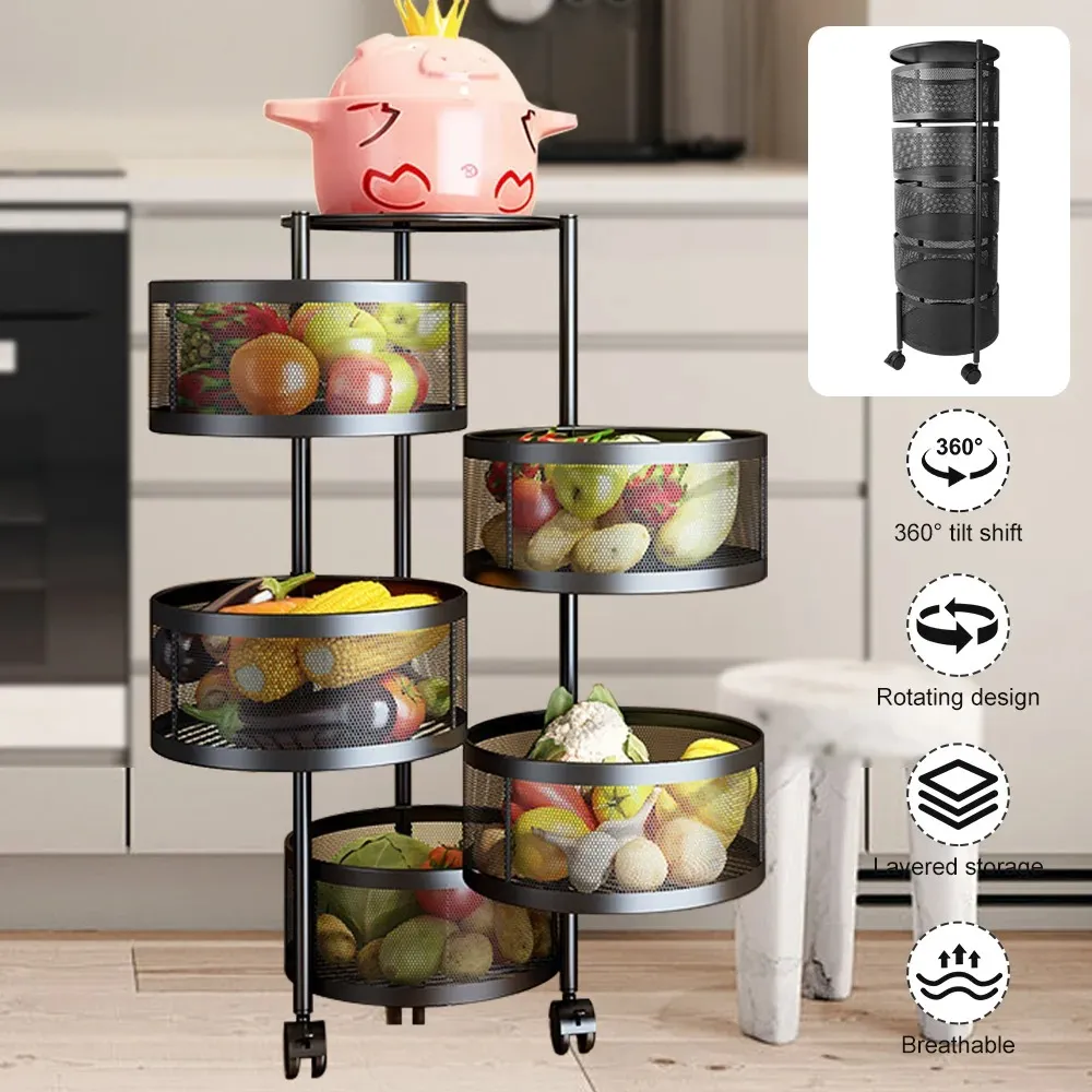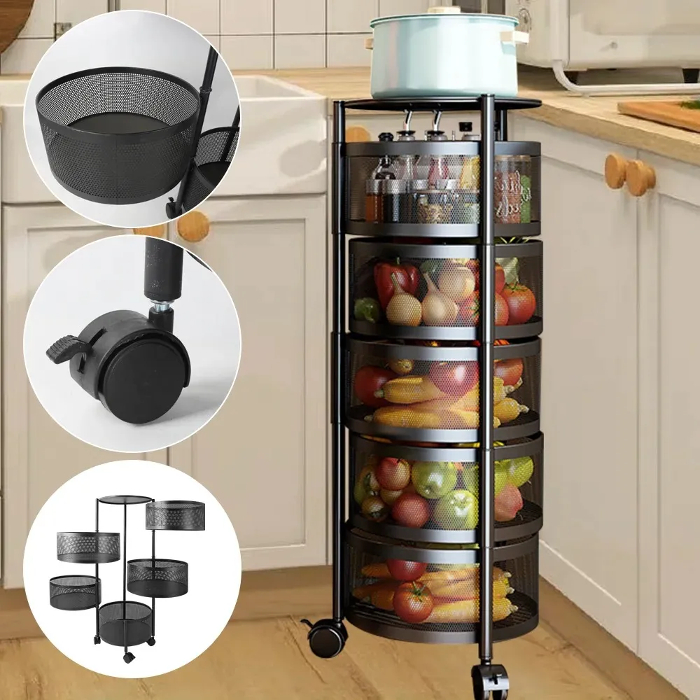1 × ShopLazaar Kitchen Rotating Storage Rack (5 tiers with wheels)